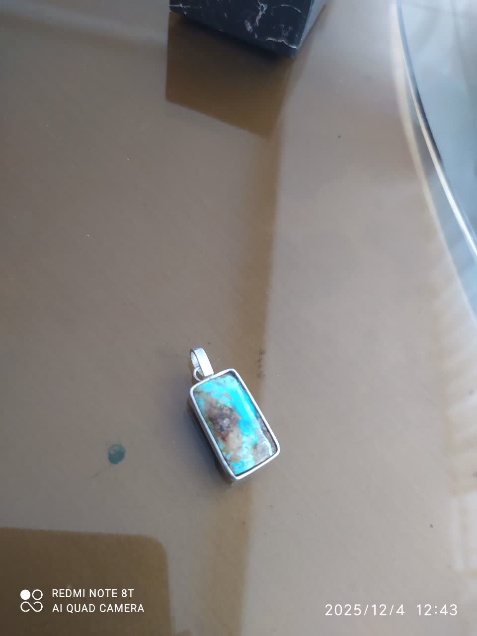 پلاکی زیبا با سنگ فیروزه و قاب نقره ضمانت فیروزه اصل نیشابور
