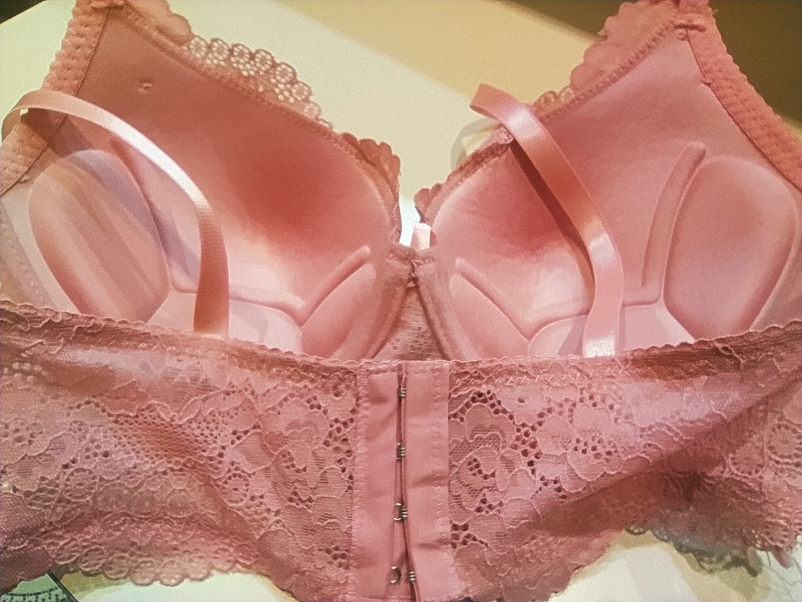 سوتین اسفنجی مجلسی نیم جک کار شده با گیپورداخل کار نخی فنر دار پشت کار 4قزن و پهن و تمام گیپور تک رنگ رنگ کالباسی یا صورتی چرک