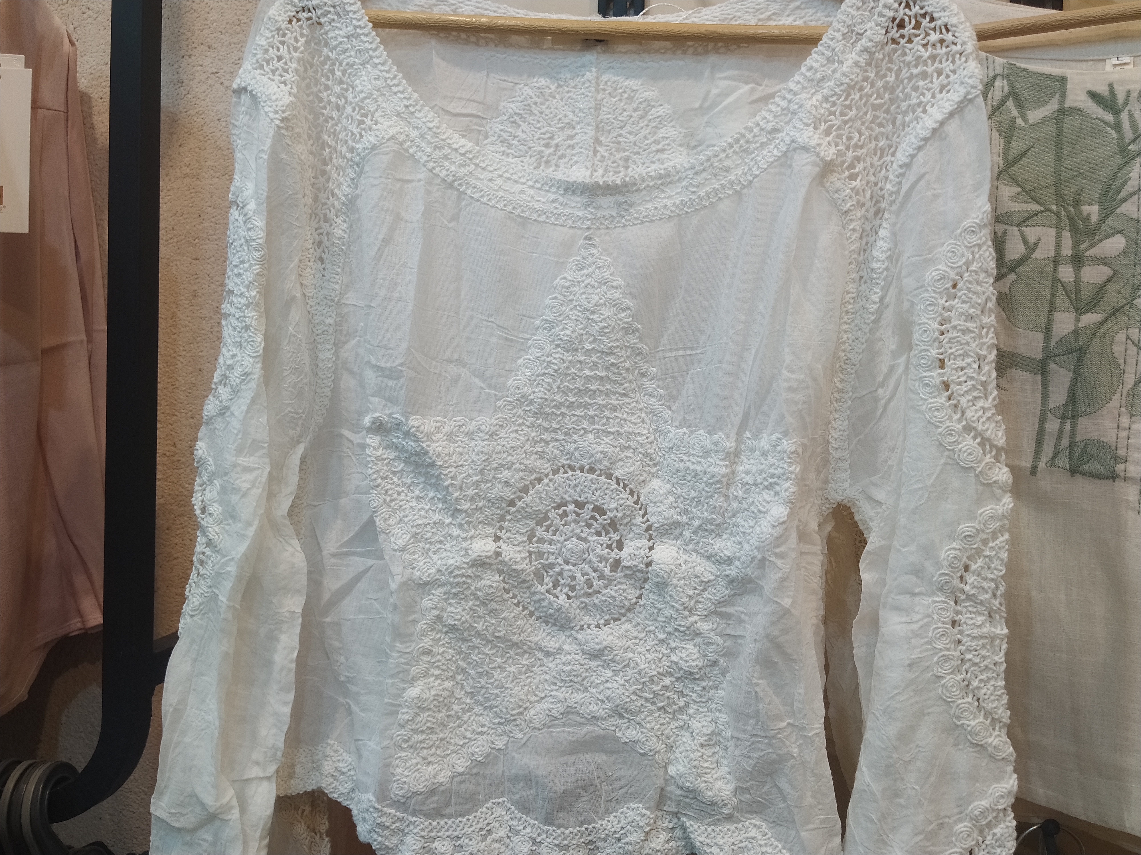 شومیز مکرومه فری سایز مناسب تا ۴۴ در دو رنگ آستین بلند