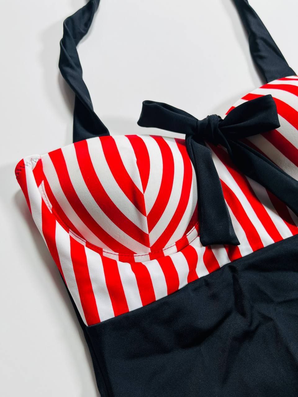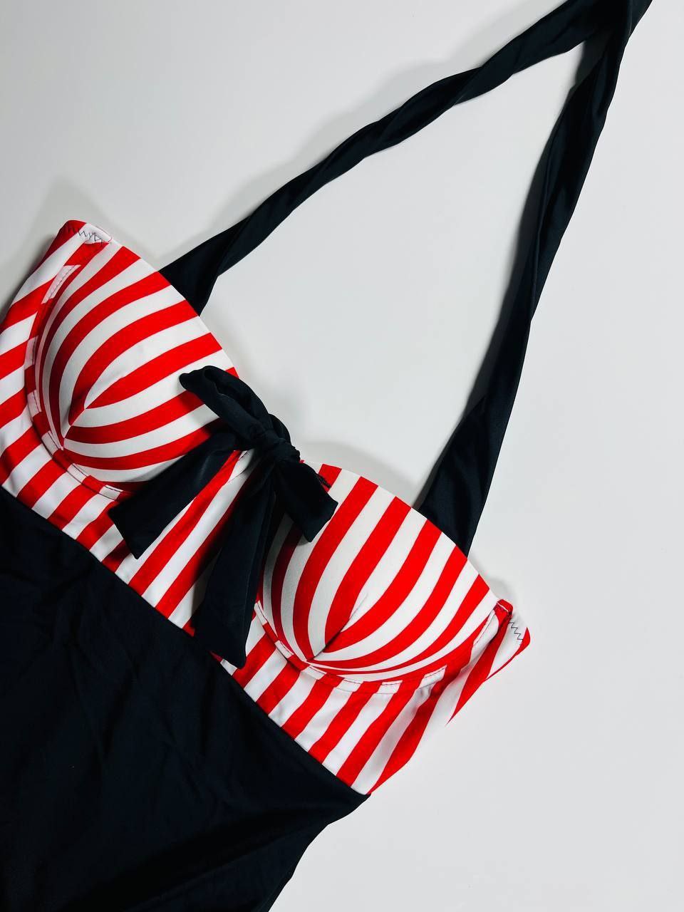 مایو کاپدار زیر فنردار در دو سایز مناسب سایز ۳۶ تا ۴۴ و کاپ سینه از ۷۰ تا ۸۵ یقه گرهی